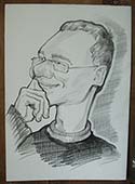 Его движения карандашом уверенны, каждый росчерк графита оставляет на листе бумаги неповторимую особенность шаржируемого.